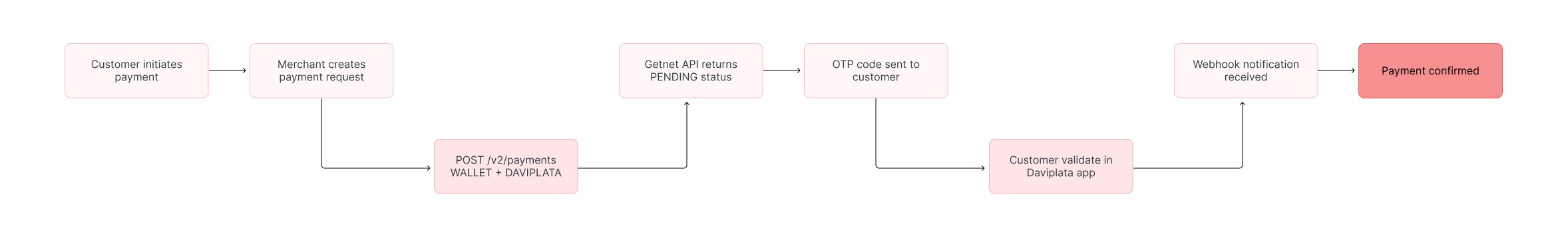 | Customer interaction | Push notification sent to customer's mobile device via Daviplata app |