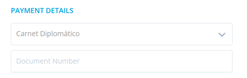 - In ‘Payment Details’, the customer selects the document type from the drop-down list and enters the document number in the ‘Document Number’ field.