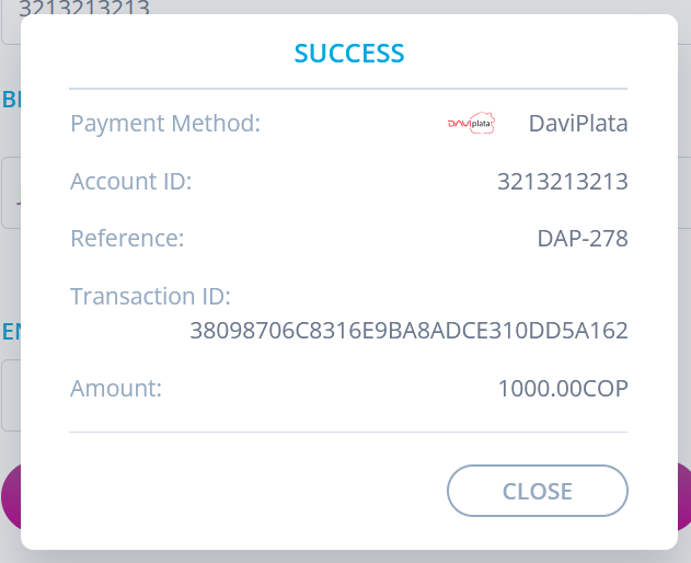 Important: Daviplata is only available in Colombia and expects COP currency. Contact your Account Manager to enable this payment method for your seller account.